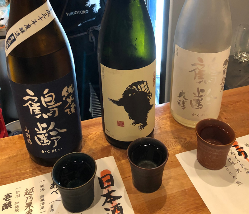 店長さん自ら新潟県まで仕入れに行ったこだわりの日本酒飲み比べが楽しめます。