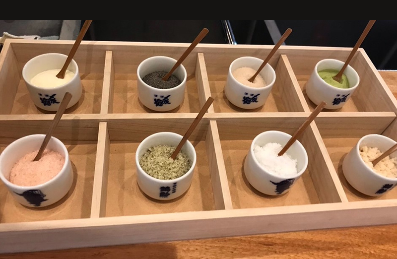 好きな方(マニア)にはたまらない、いろいろな塩で日本酒を味わえます。