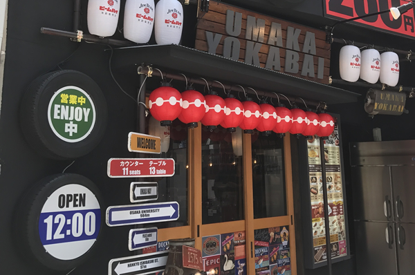 大阪府池田市石橋駅近くに、「博多串焼き卸ウマカーよかばい」がオープン!ドラム缶のテーブルや生ダルで作ったオリジナルの椅子など、とにかくお酒を楽しく飲めるお店。リースナブルな価格で気軽に利用でき、昼もお酒が楽しめます!