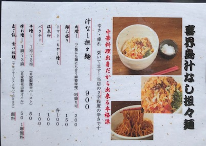 喜界島担々麺の名前の由来は、担々麺といえばゴマ、「ゴマといえば喜界島」だそうです。