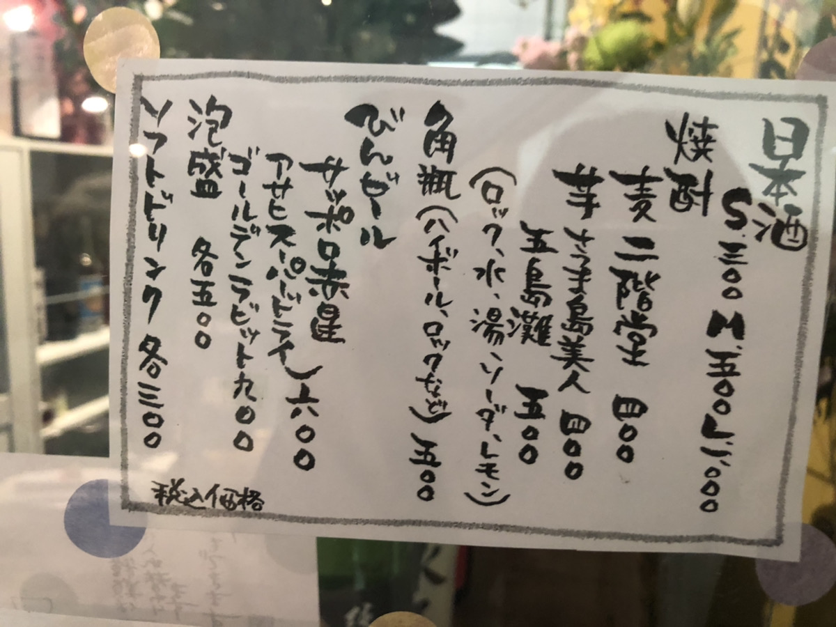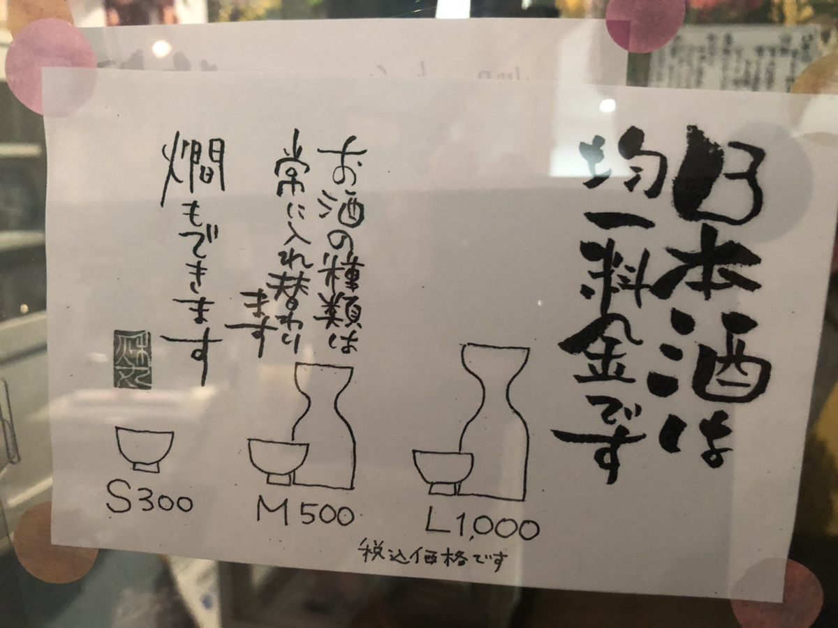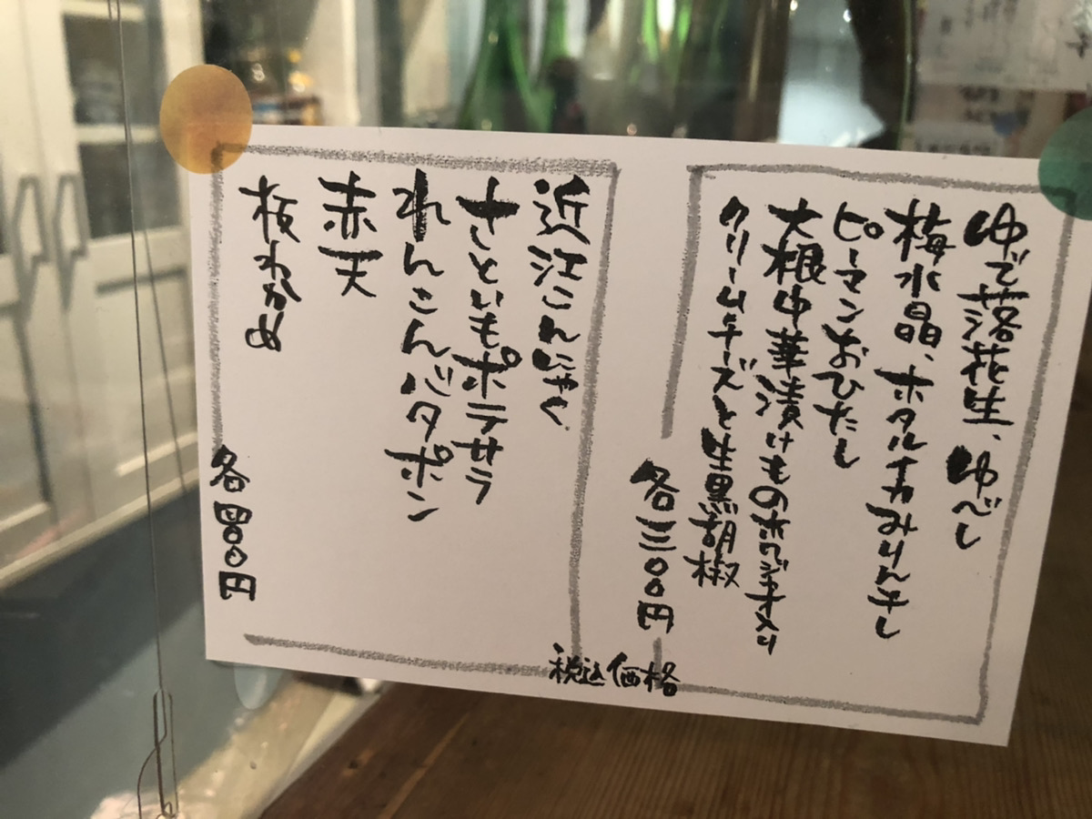 店主様の手書きのメニュー、こだわりのお酒は絶品です。