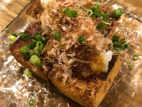 珍しいメニューの中でも炭火厚揚はパリッとした触感で、